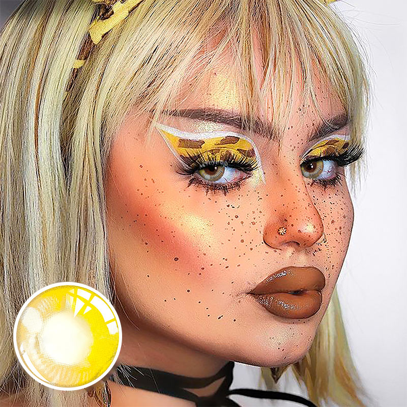 MYEYEBB Anime Yellow Prescription Cosplay Colored Contact Lenses